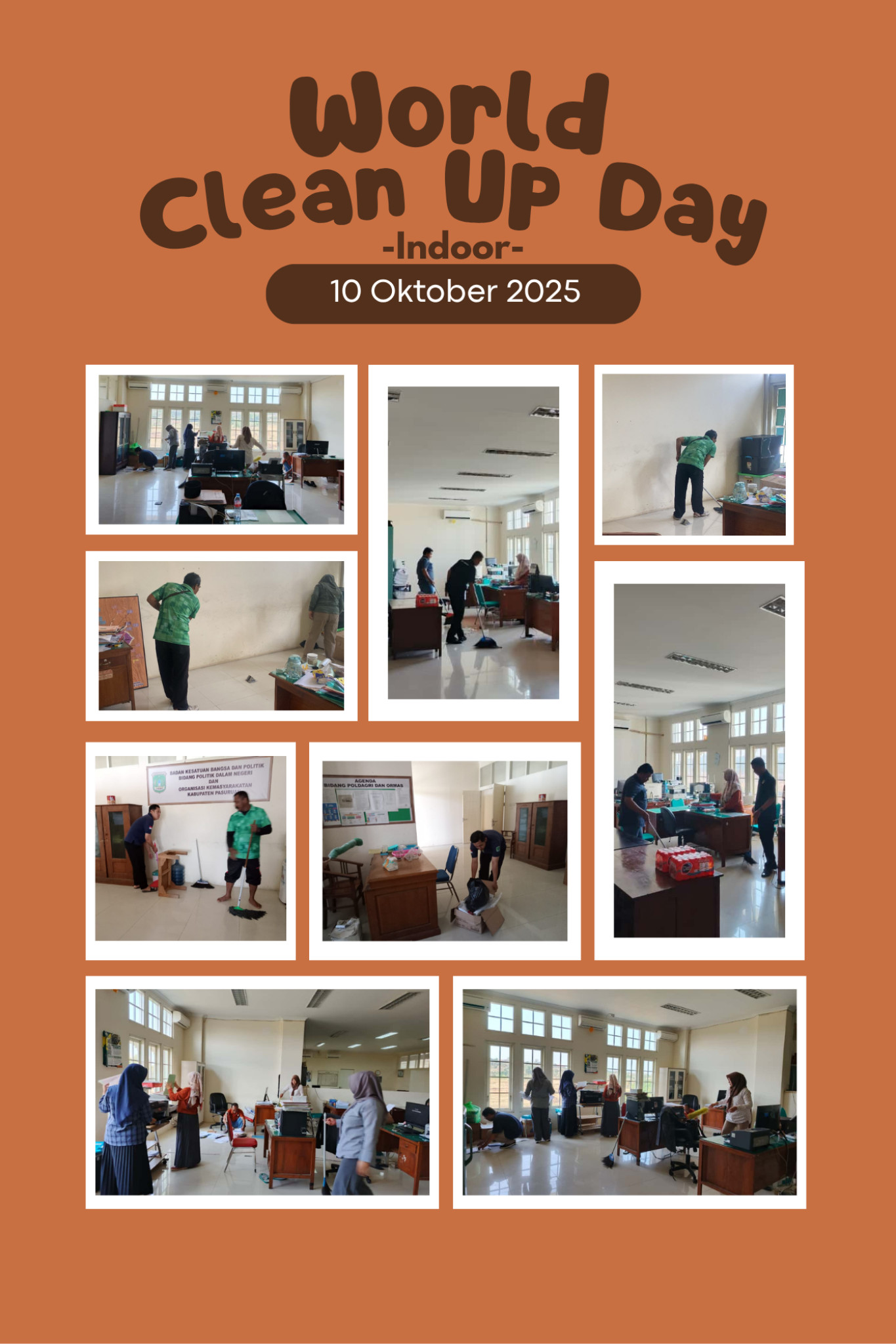 3. Melaksanakan Gerakan Kerja Bakti secara serentak yang dilaksanakan pada hari Sabtu, 20 September 2025 di lingkungan masing-masing bersama-sama dengan gerakan seluruh dunia dalam kerangka WCD.